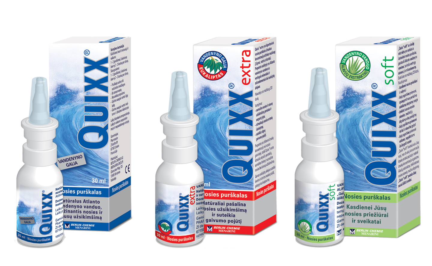 QUIXX® šeimos produktai apima visus nosies priežiūros aspektus: nuo drėkinimo ir valymo iki nosies užsikimšimo profilaktikos ir jo pašalinimo.